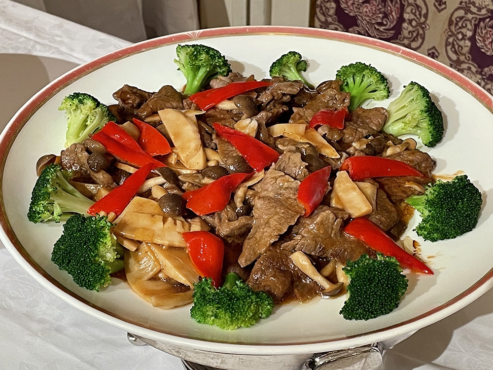 ▲博多和牛“もも肉”と彩り野菜のオイスター炒め