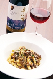 イタリア各地の珍しい手打ちパスタと、季節感溢れる多彩なメニューが自慢。長ネギや銀杏といった日本ならではの旬素材をイタリア料理の一皿に盛り込み、新鮮な驚きを与えてくれるのがこの店の魅力だ。安心院ワインとの出会いは数年前にお土産でもらったワイン。それまで国産ワインは敬遠していたそうだが、飲んだとたんにその味に惚れ込み、すぐに店でワイン好きを集めたワイン会を開催。いまでは大分県安心院のワイナリーへのバスツアーを主催するほどで、案内する度に安心院ワインファンも増えているという。 「提供している安心院ワイン・リザーブはやさしい味わいが特徴。旬の素材を使う当店の料理との相性もとてもいいので、前菜やパスタと合わせて楽しんでほしいですね」とオーナーシェフの手嶋義之さん。夫人の法子さんも「安心院ワインは年を重ねるごとに美味しくなっていて、毎年驚かされています。九州産でこのクオリティは素晴らしいと思います」と太鼓判。