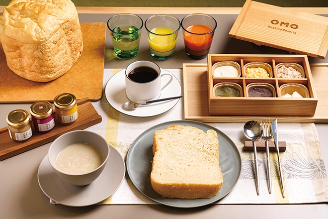 朝食は部屋のホームベーカリーで焼きたてのパンを楽しむ