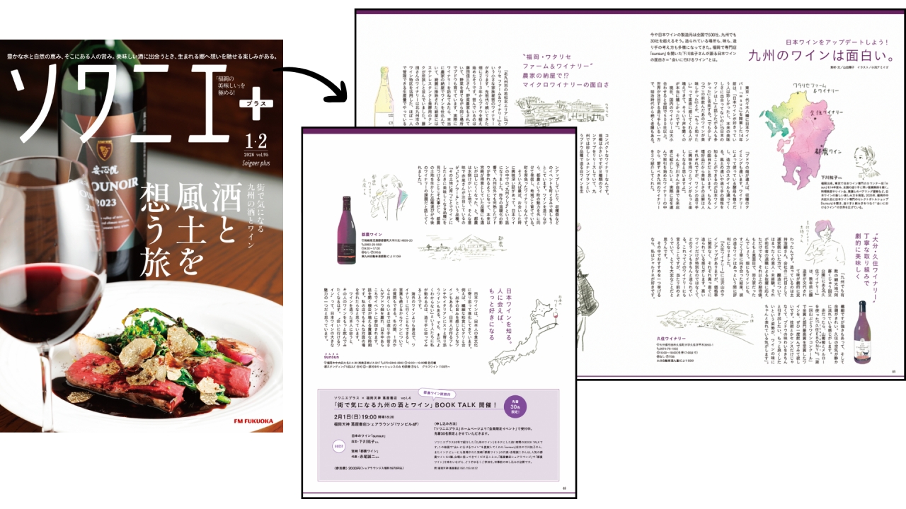 今回のBOOK TALKでは、ソワニエプラス95号の特集「酒と風土を想う旅」でご紹介した、日本ワインに明るい2人のゲストにご登壇いただきました。