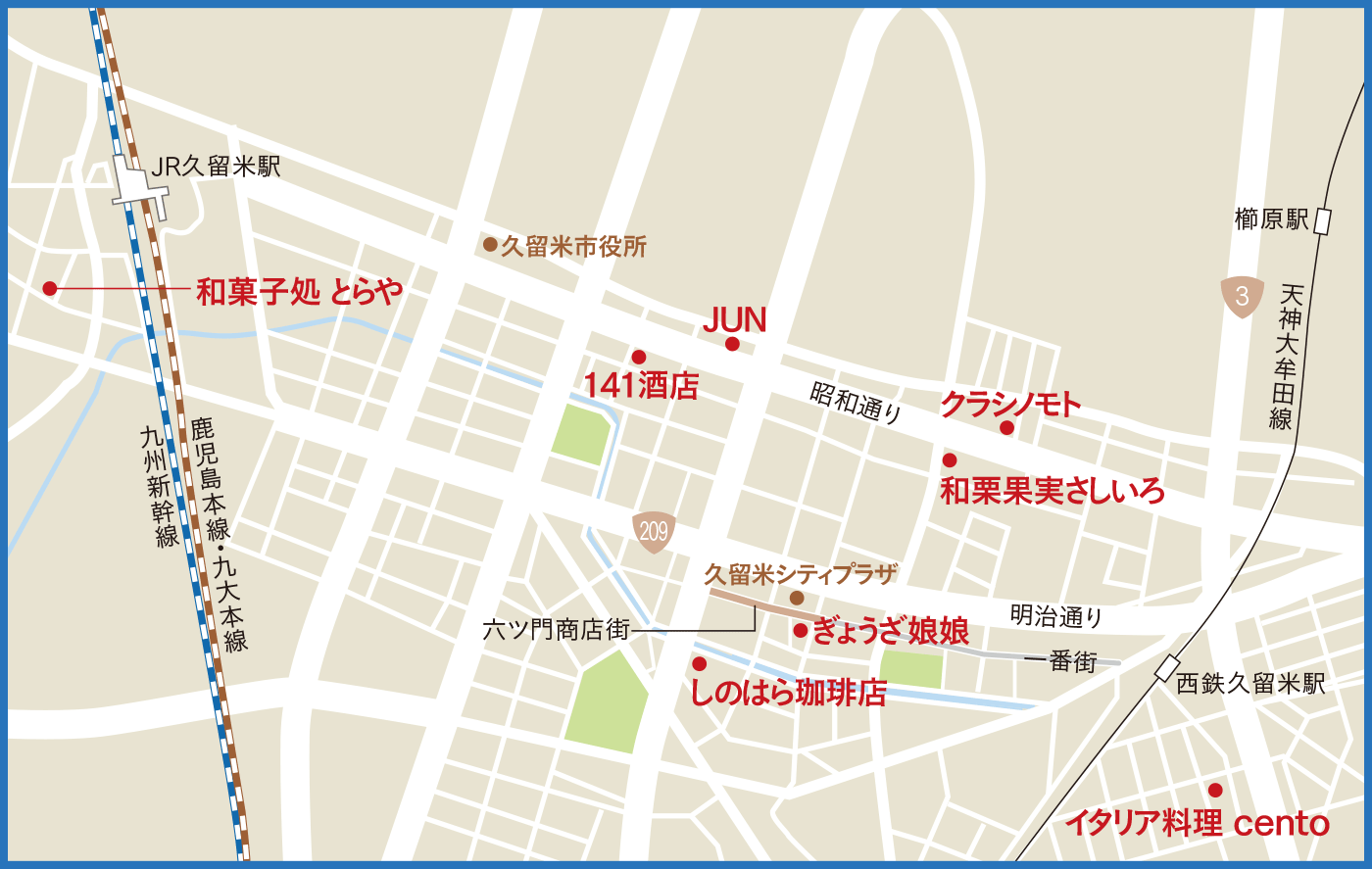 JR久留米駅まで続く約2kmの道のりを、ぶらり、気ままに散策。