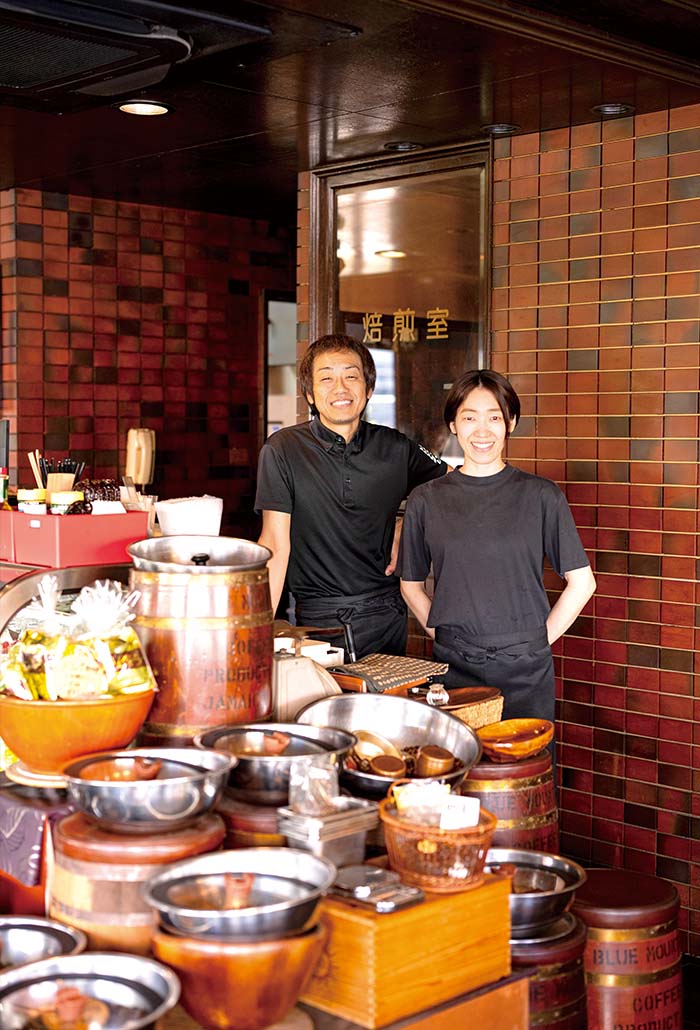 香ばしい珈琲の香りに包まれた、1978年創業の老舗喫茶店。まずは、創業時から変わらないサイフォン式で淹れる「しのはらブレンドコーヒー」をオーダーしたい。二代目の篠原裕典さんは、「食事と共に楽しむ、喫茶店らしいバランスの良い味を守り続けています」と焙煎も手がける。そして、久留米市内の多様な店のケーキが味わえるのも魅力の一つ。提携する7軒のケーキ店の中から、日替わりで3軒のケーキがショーケースを彩る。