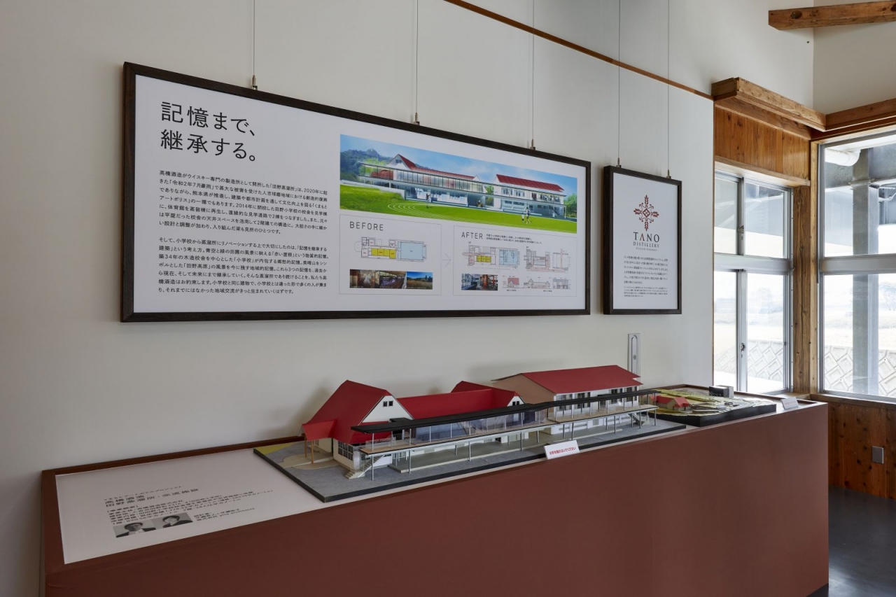 体育館を蒸留棟、教室を貯蔵庫や展示スペースに改修し、