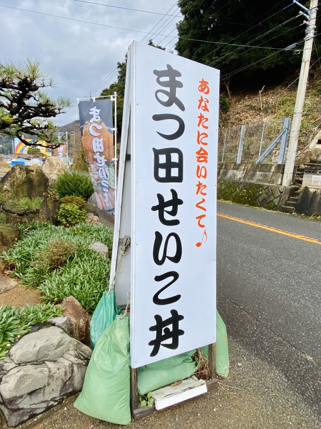 旅館の近くにあった料理店「まつ田」の看板が・・・